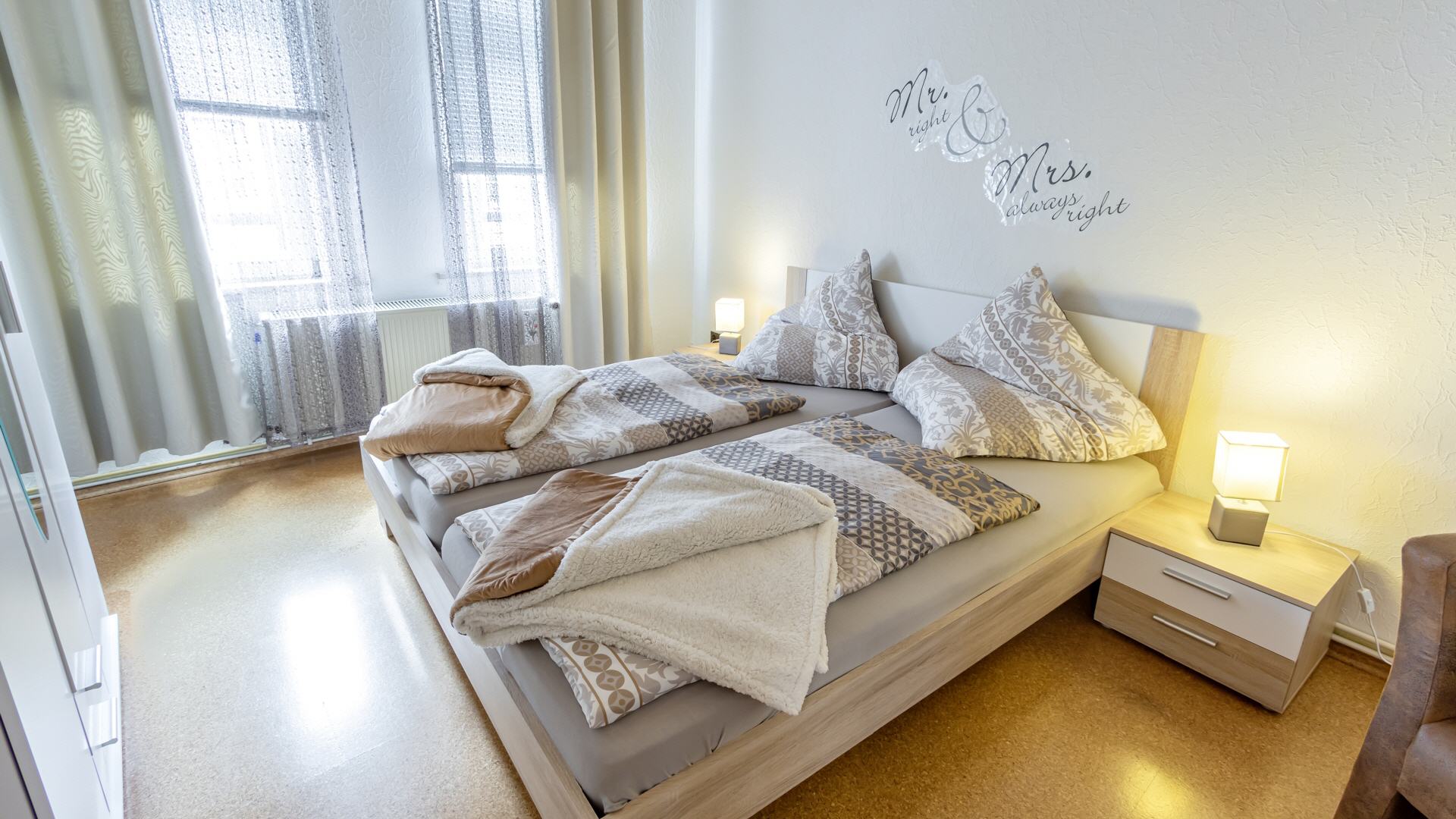 Das gemütliche, geräumige Schlafzimmer garantiert Ihnen einen ruhigen und erholsamen Schlaf, damit Sie am nächsten Morgen ausgeruht in einen erlebnisreichen Tag starten können. Hier finden Sie auch ausreichend Platz für Ihre Kleidung und andere persönliche Dinge.