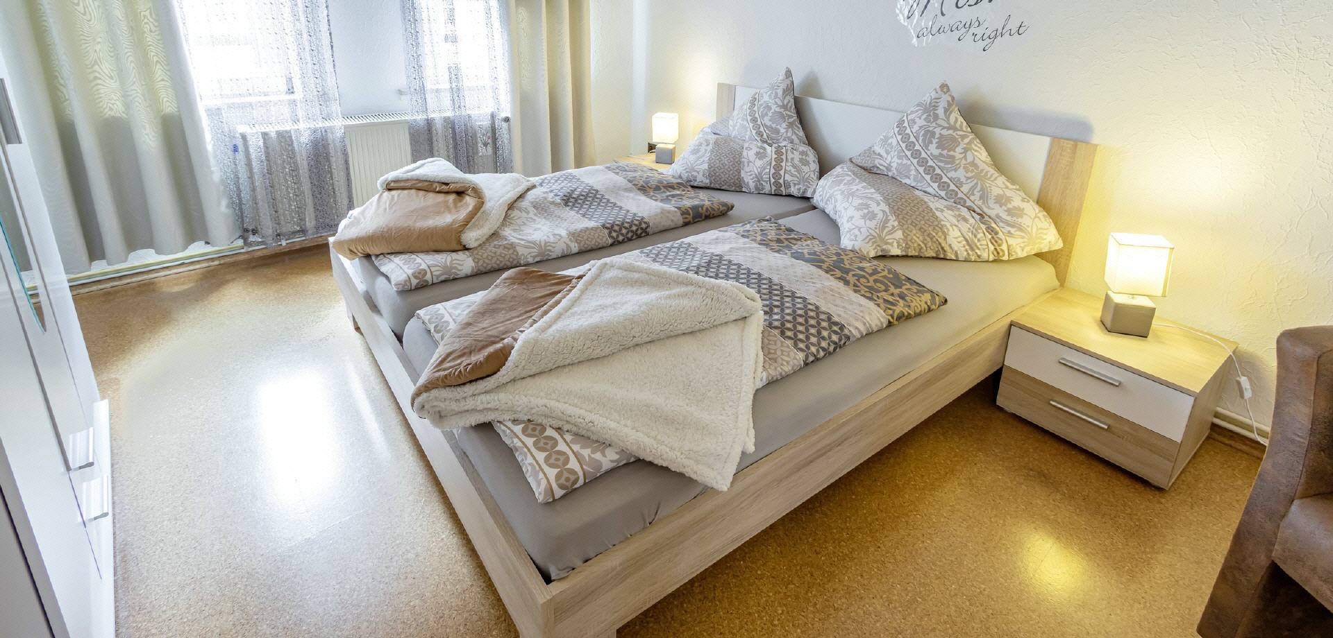 Das gemütliche, geräumige Schlafzimmer garantiert Ihnen einen ruhigen und erholsamen Schlaf, damit Sie am nächsten Morgen ausgeruht in einen erlebnisreichen Tag starten können. Hier finden Sie auch ausreichend Platz für Ihre Kleidung und andere persönliche Dinge.